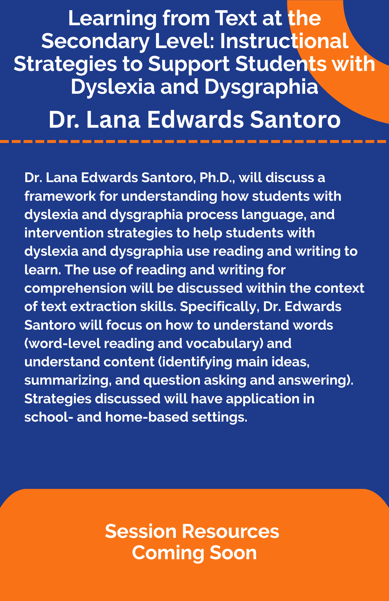 Please visit Learning from Text at the Secondary Level: Instructional Strategies to Support Students with Dyslexia and Dysgraphia for additional information.